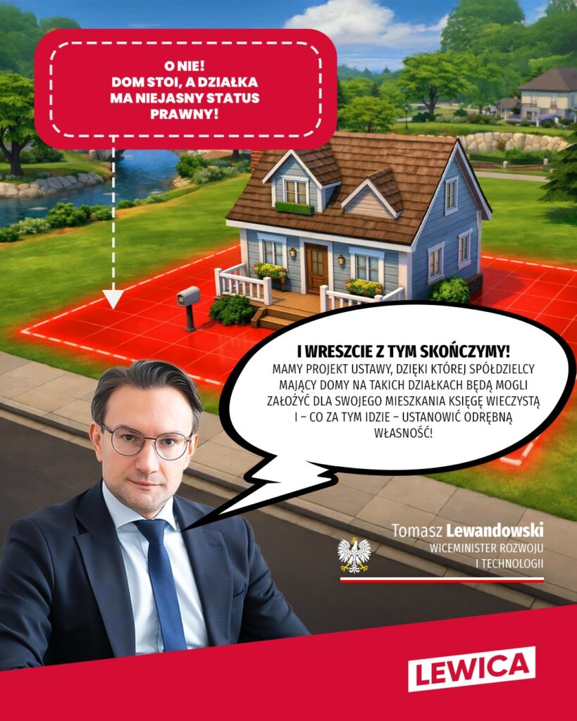 „I wreszcie z tym kończymy! Mamy projekt ustawy, dzięki której spółdzielcy mający domy na takich działkach będą mogli założyć dla swojego mieszkania księgę wieczystą i, co za tym idzie, ustanowić odrębną własność!”