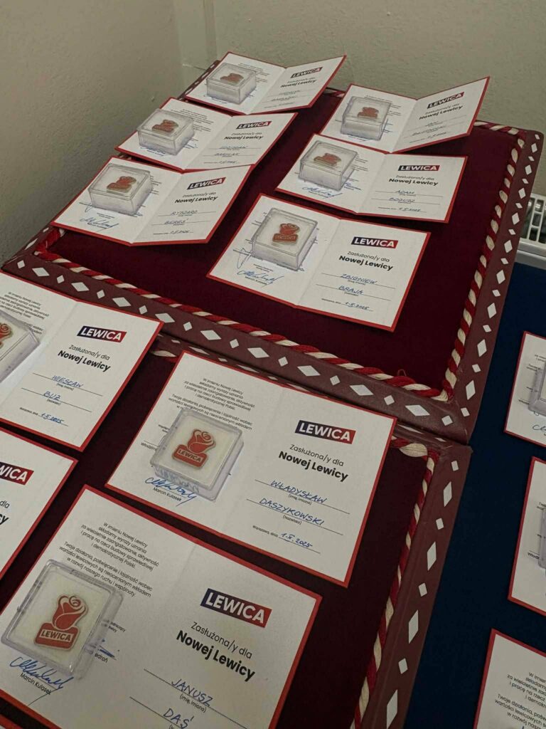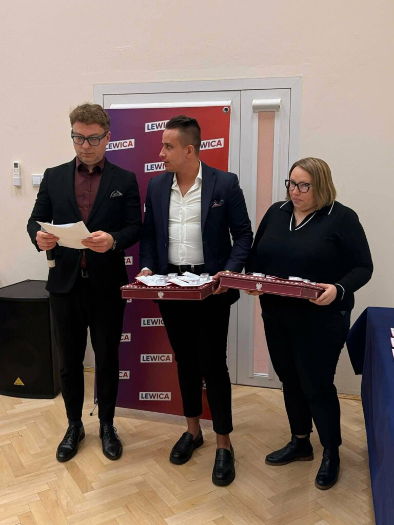 Szczególnym i podniosłym momentem było wręczenie odznaczeń „Zasłużony dla Nowej Lewicy” — wyróżnienia dedykowanego osobom, które w wyjątkowy sposób angażują się w działalność formacji i konsekwentnie pracują na rzecz jej wartości i programu.